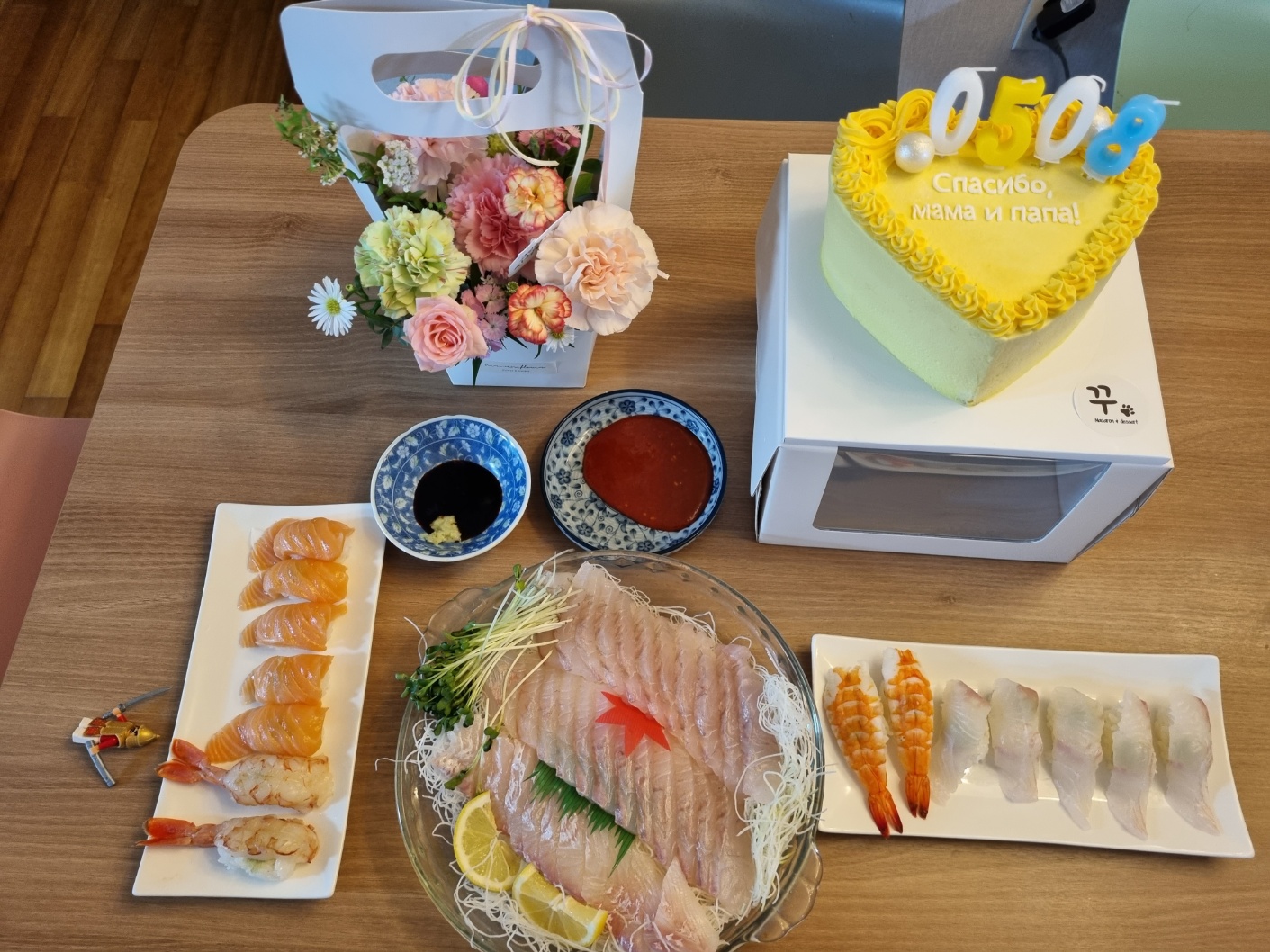 동생은 케이크와 꽃을 준비했더라고요