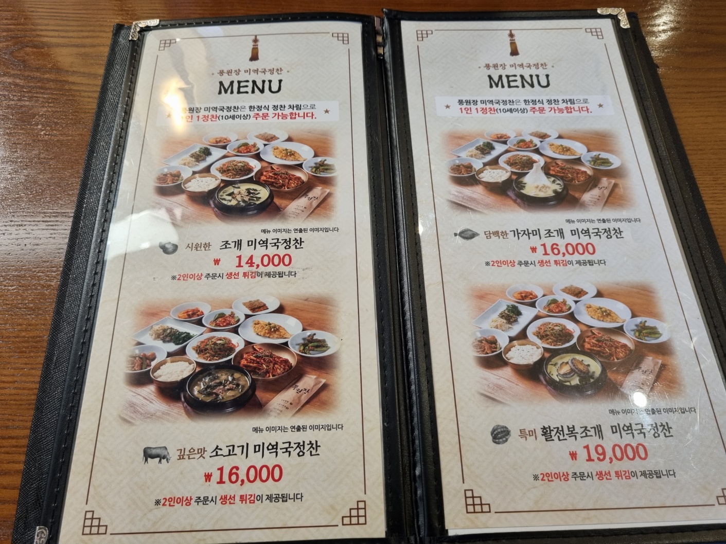 가자미 조개 미역국정찬