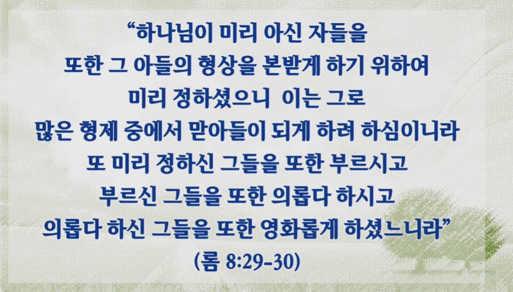 하나님 미리 아시고 미리 정하셨대요.