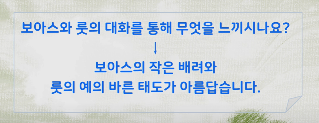 네~~ 알겠습니다. 그러면서 보아스에게 다가왔나요?