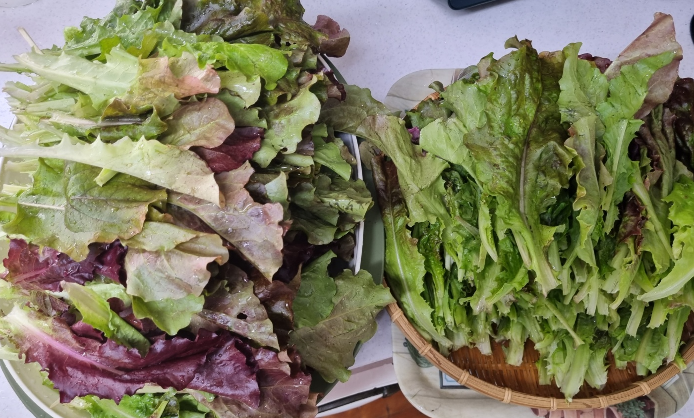 어린 모종을 사서 직접 키우신 무공해 상추를