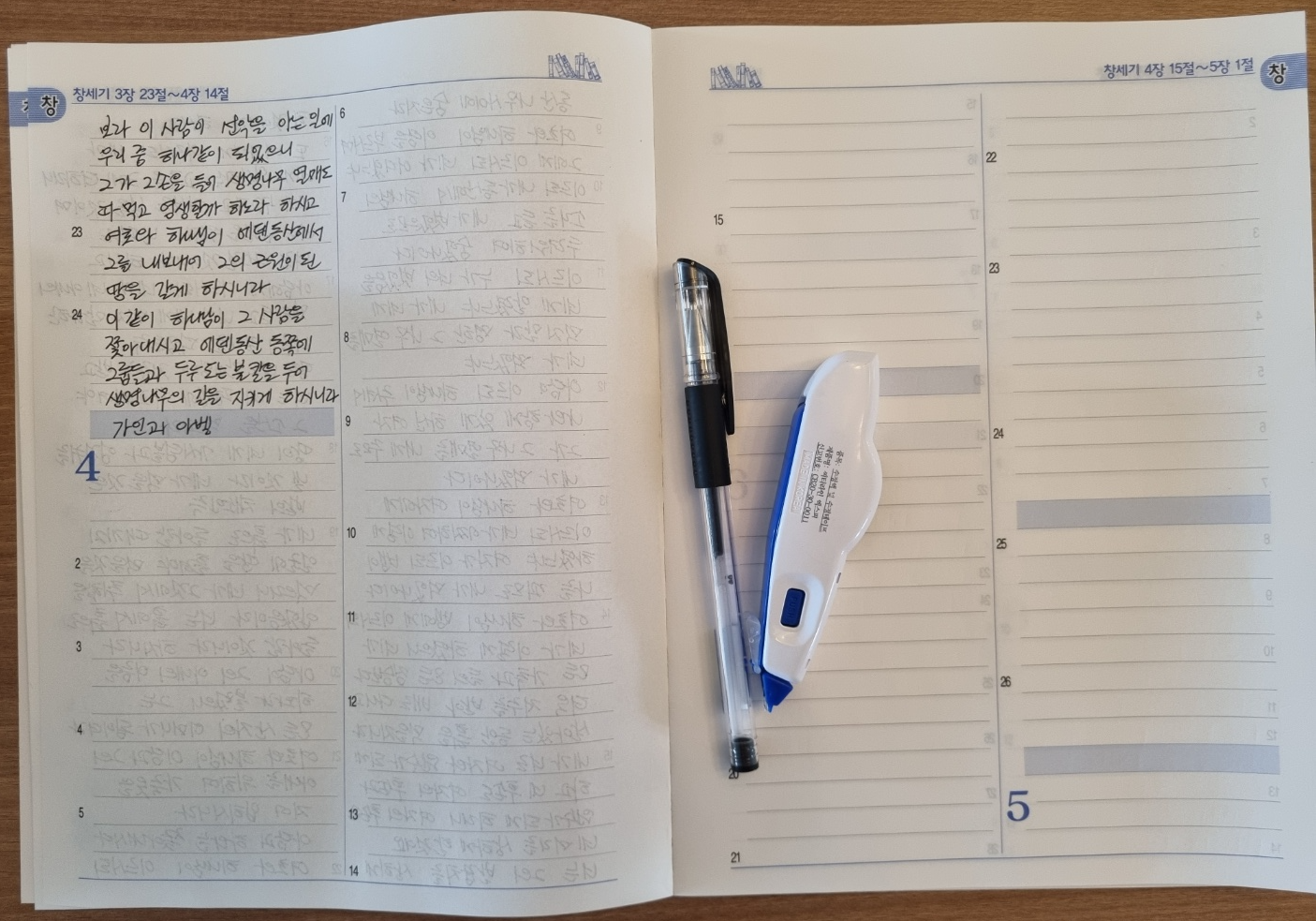 성경 필사를 완성하게 해달라고 기도를 드리고