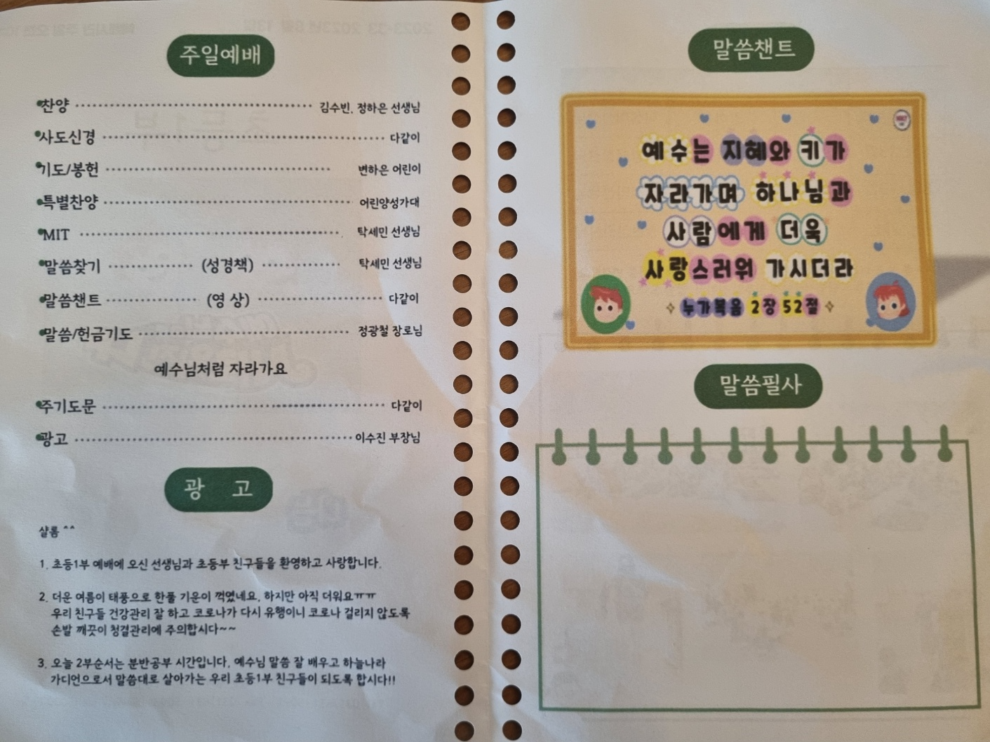 주일 예배시간 보다