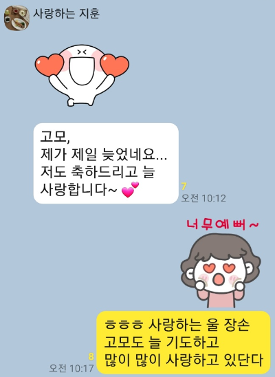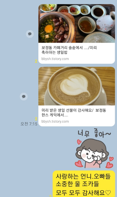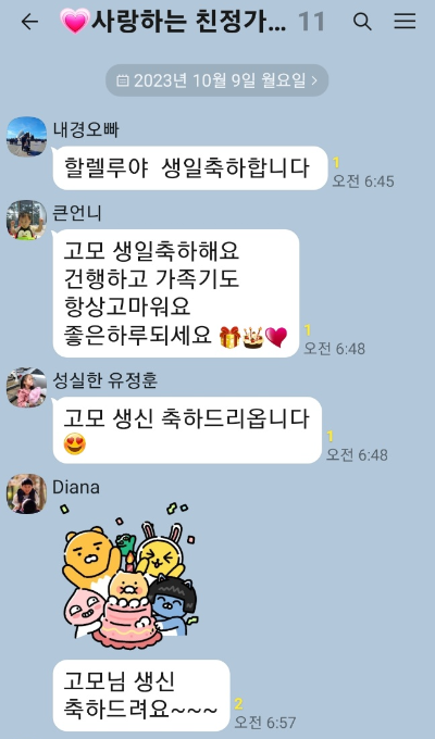 사랑하는 친정기족들의 축하 문자가 쏟아지네요