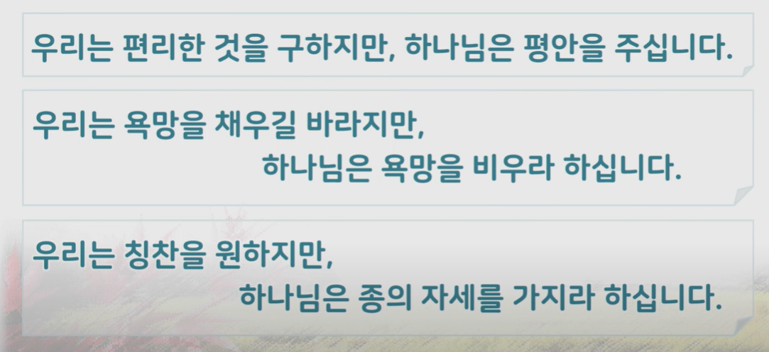 하나님의 방법을 내 뜻으로 자꾸 바꾸려고 하고,
