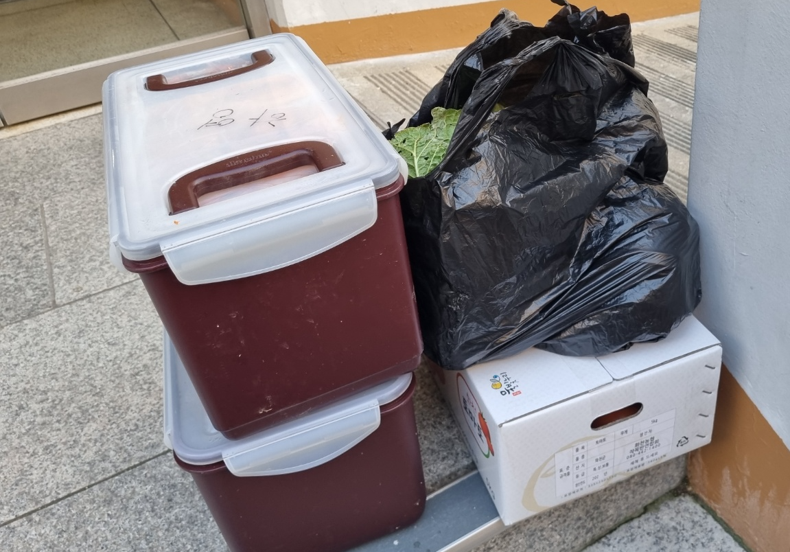 지난 주일에 김장을 하시고 담아놓으셨어요
