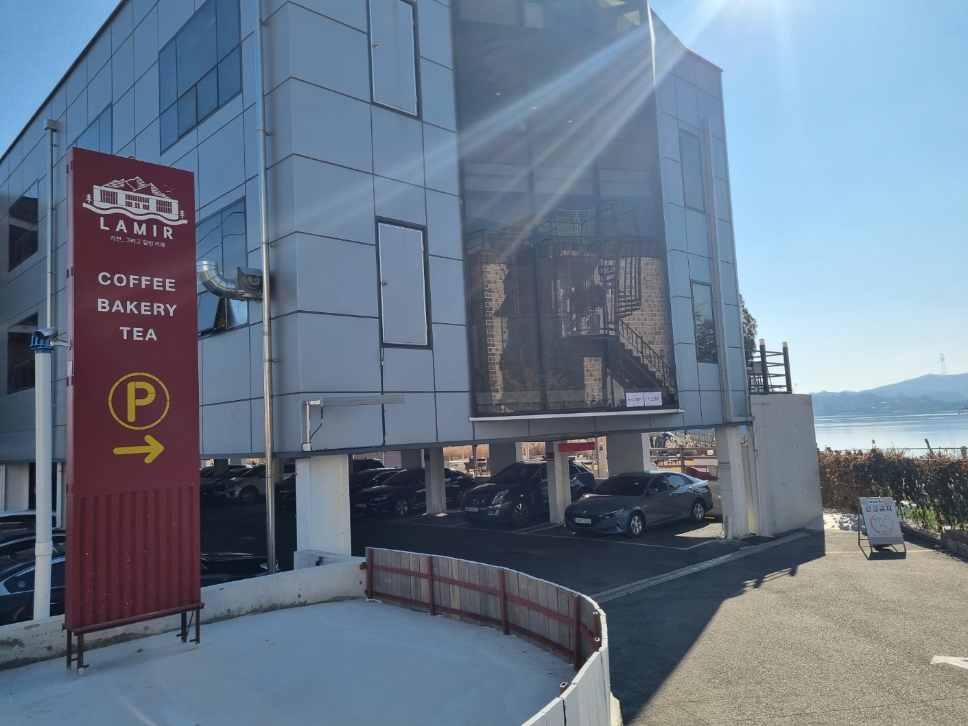 멋진 저수지 뷰가 보이는 라미르는