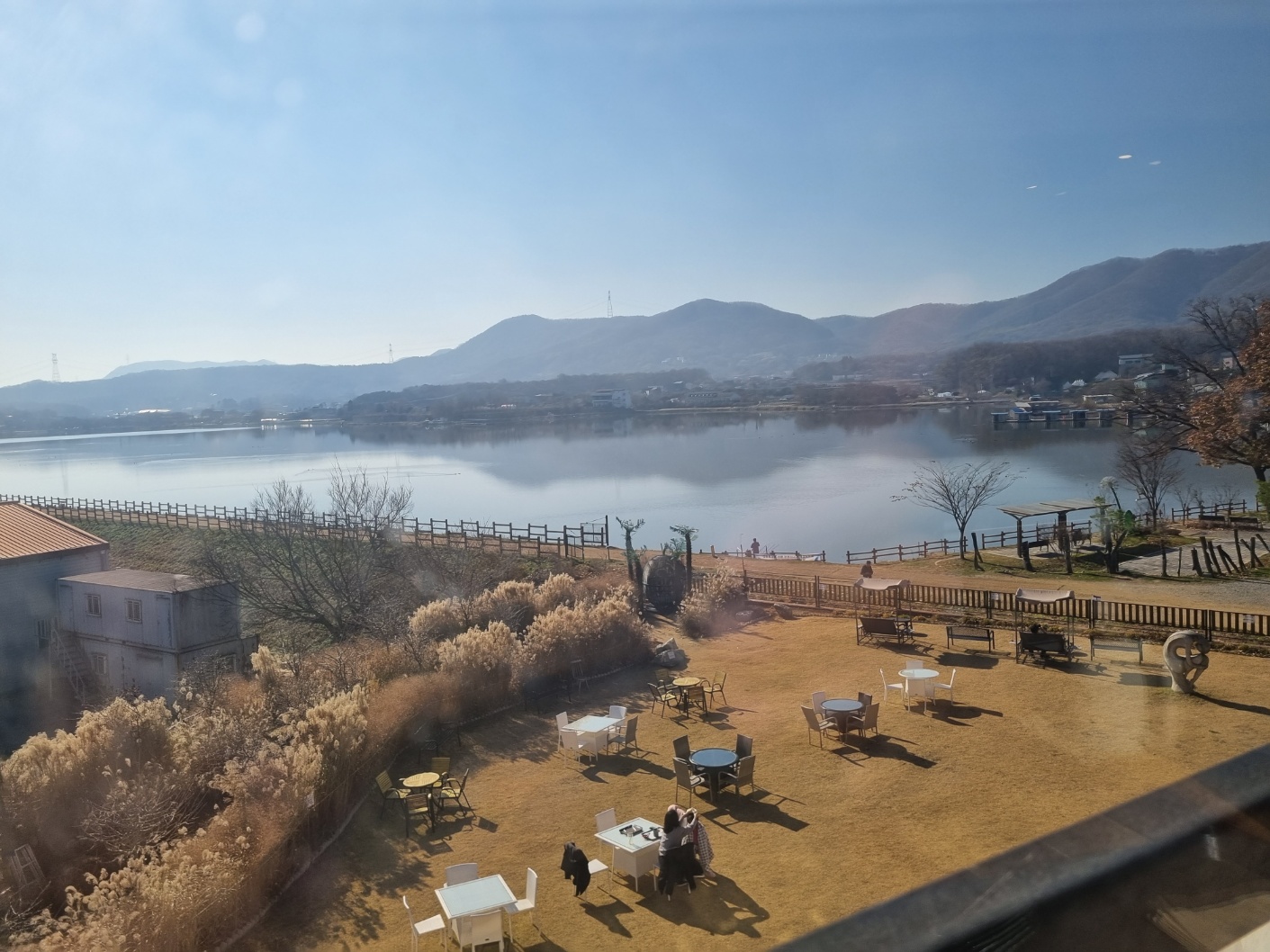 물이 보이는 2층 창가에 앉아서