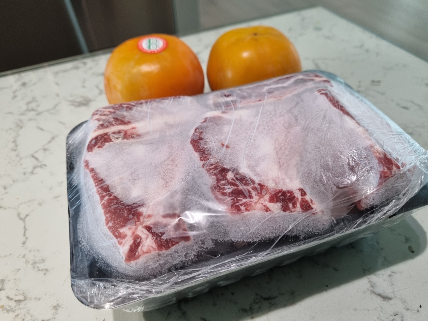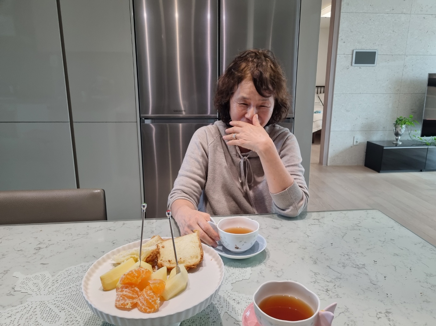 소갈비와 단감을 건네주는 언니