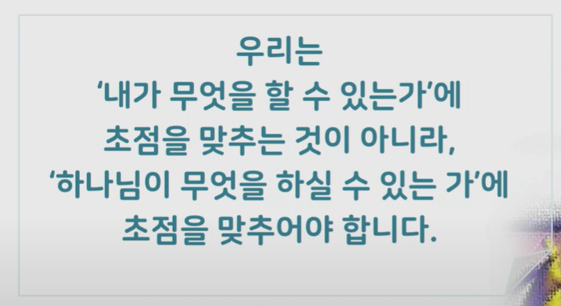 하나님이 하실 수 있는 곳에 초점을 맞춥니다.