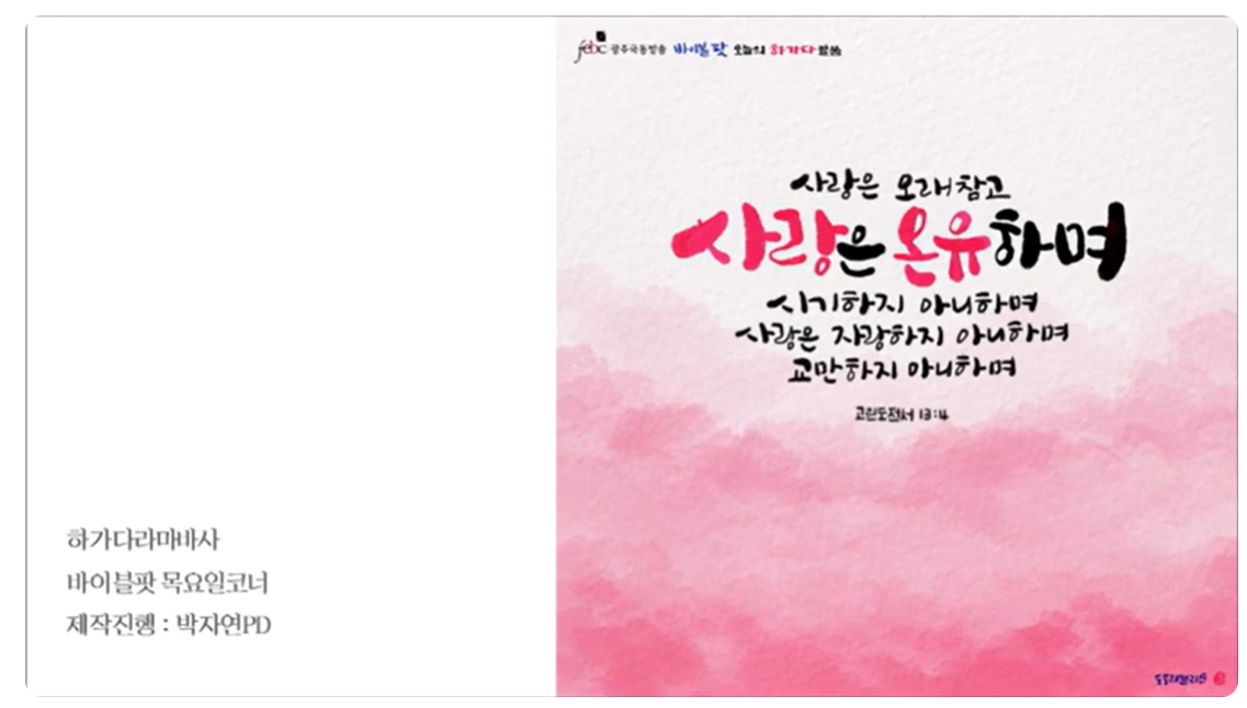| 사랑은 오래 참고.....이강주 목사/ 극동방송 바이블 팟 (4) | 2024.02.16 |