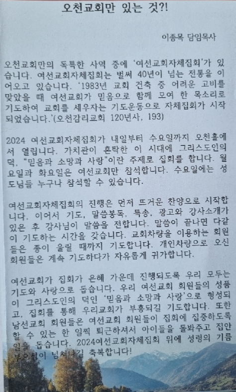 지난 월요일부터 3일 동안 우리 오천교회에서