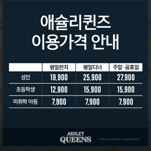 오늘 우리가 2층에 있는 애슐리퀸즈에 온 것은