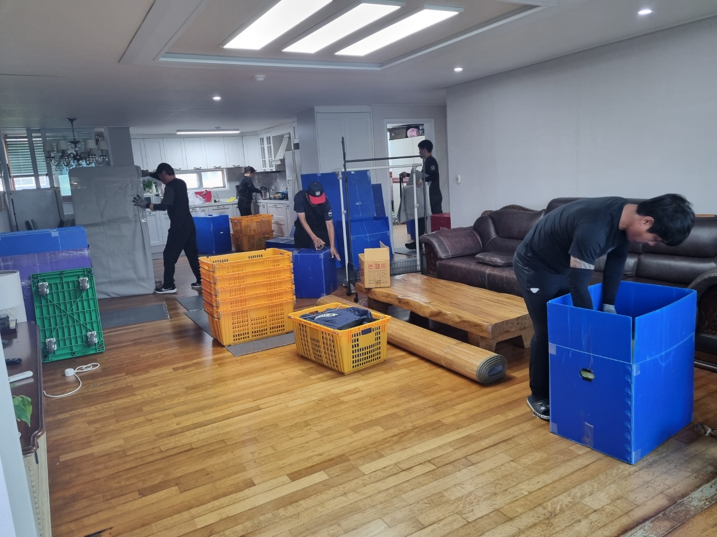 맡은 순서대로 착착 짐을 포장하시니