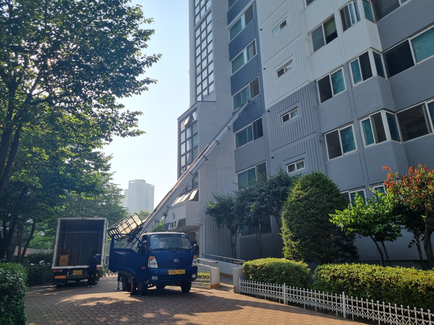 오전 7시 30분 이삿짐 차가 들어오면서